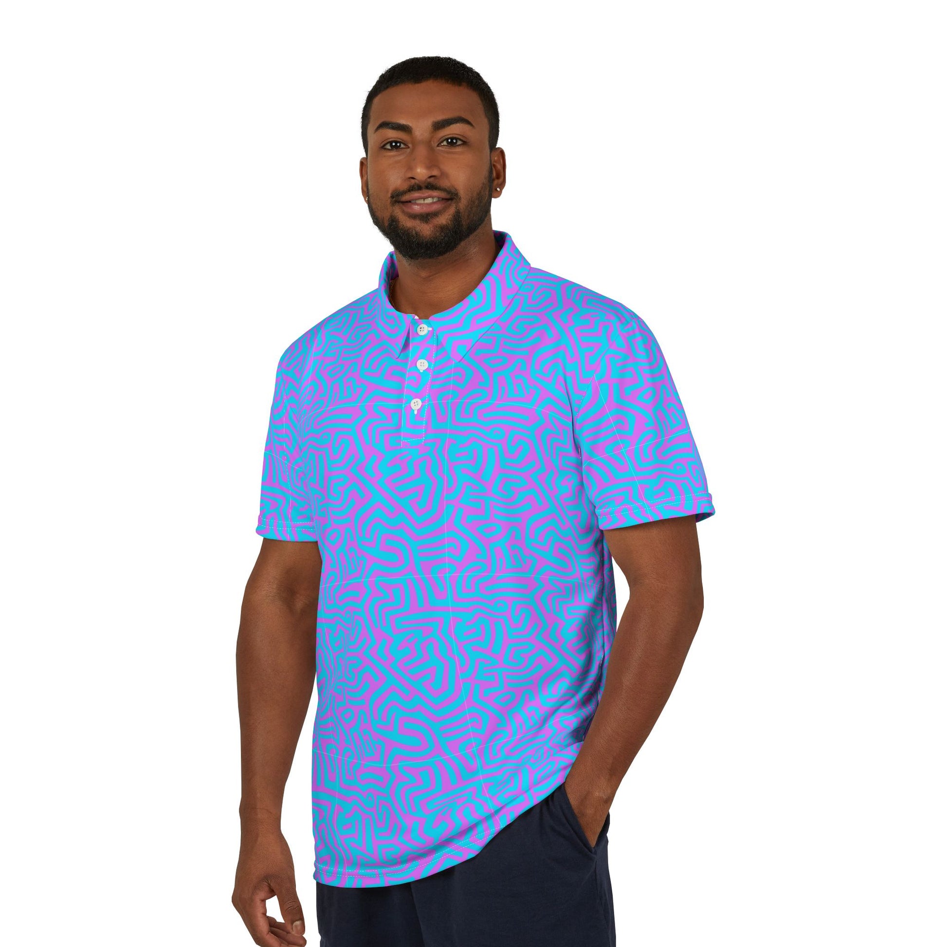 A classic pointed collar and three-button placket keep the look sharp, while the all-over print ensures you are anything but. Perfect for casual Fridays, ironic weddings, and anything that requires structured rebellion.