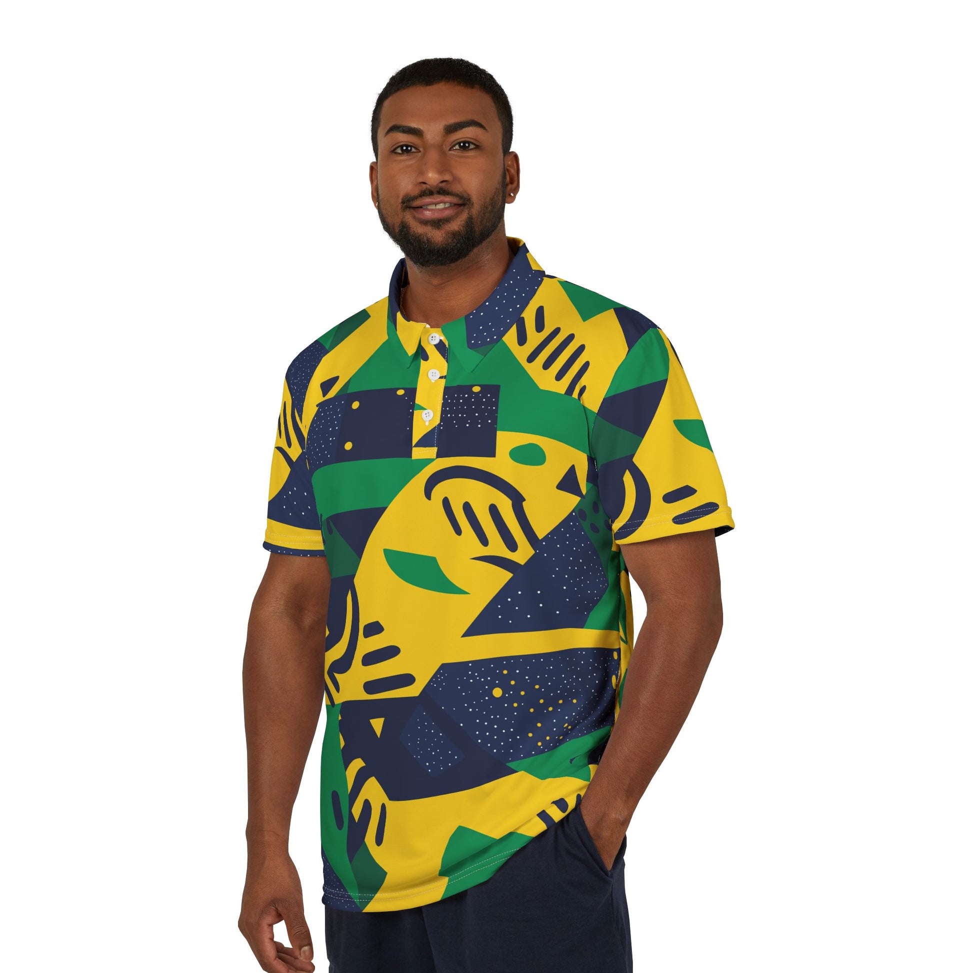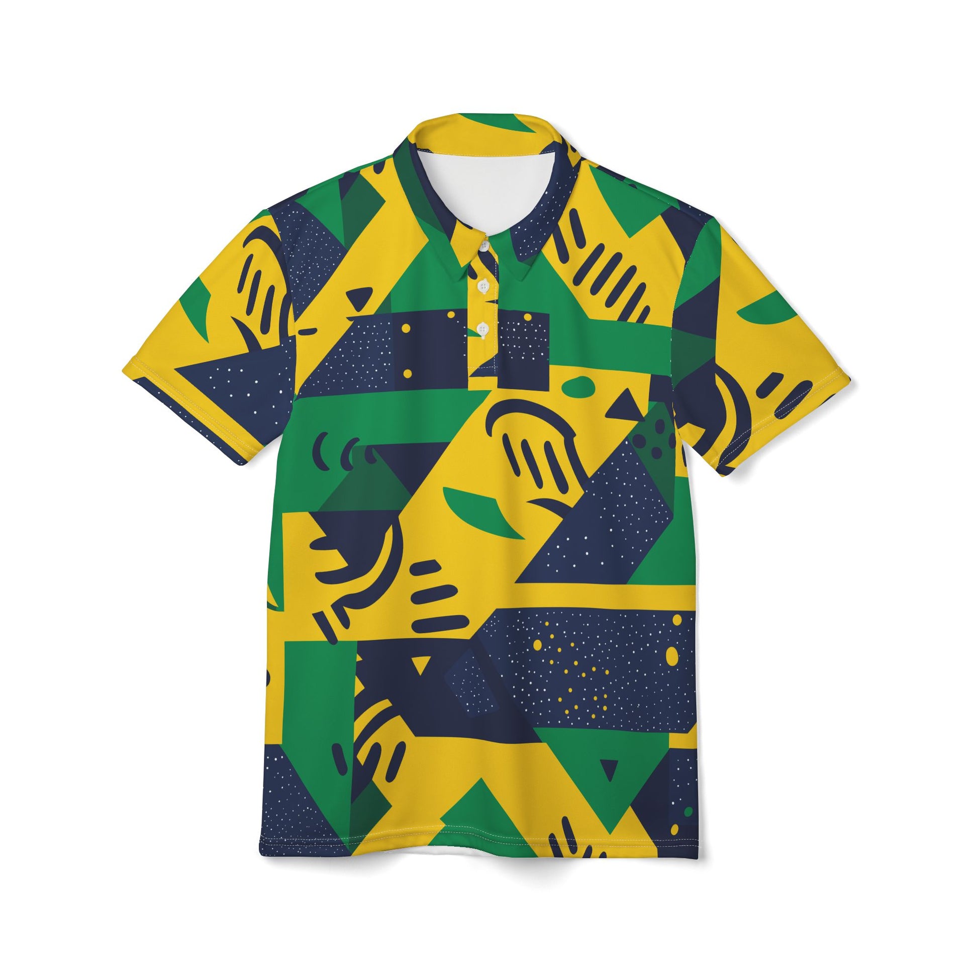 Designed for ultimate comfort and style, this polo features a classic pointed collar and a three-button placket, ensuring a timeless look that suits any occasion. The high-quality polyester fabric provides a lightweight, breathable feel, perfect for both casual and professional settings. Featuring your vibrant, customizable all-over print designs, you can express your unique personality while offering your customers the durability and ease of maintenance that polyester offers.
